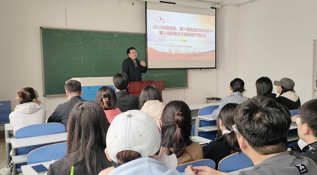 2023年新党员、第14期发展对象和第74期入党积极分子培训班开班仪式在我校旅顺校区召开。“第一课”由学院党总支书记冯元林主讲,学生党支部书记张程贺主持并辅讲,学院团委书记刘浩、办公室主任付惠琳,以及全体参训同学出席会议。