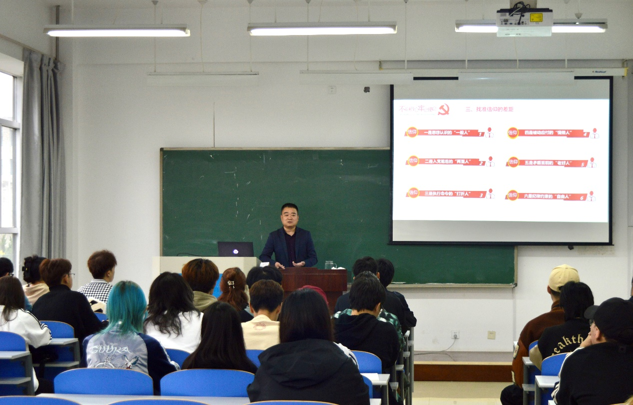 “第一课”上,学院党总支副书记汪舰以“与信仰对话 与青春同行”为主题,围绕“把握信仰的内涵” “品味信仰的味道” “找准信仰的差距” “践行信仰的要求”四个方面展开讲述。70分钟的课程,凝结了党的性质、宗旨、奋斗目标,以及党员的权利、义务和责任,让学子们深刻认识到理想的价值在于坚守、信仰的力量在于笃行。