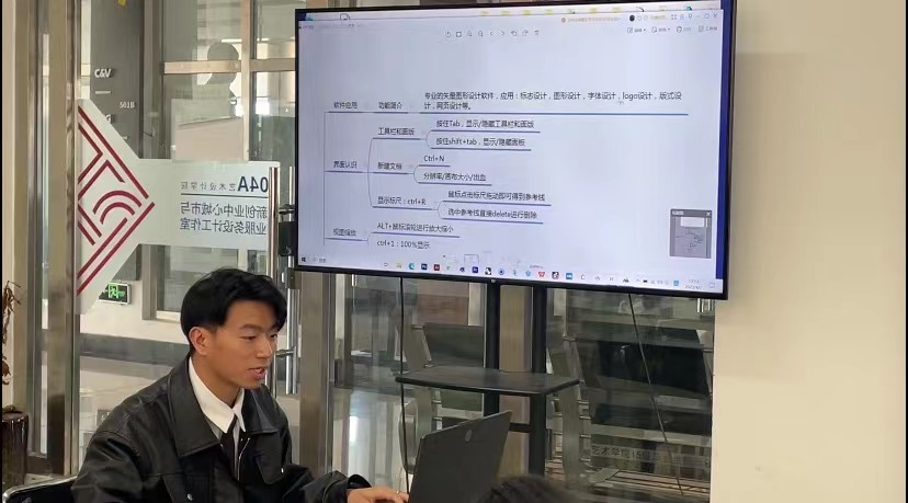 交流会主要围绕着平面设计相关知识展开,工作室李毓凡同学作为此次自主学习的授课人,他先是向大家介绍了与平面设计相关的一些基本概念和背景,随后随后采取一步步带领教学的方式向同学们展示了关键术语的具体表现形式,使其直观地感受到了点线面所组合而成的无穷魅力。