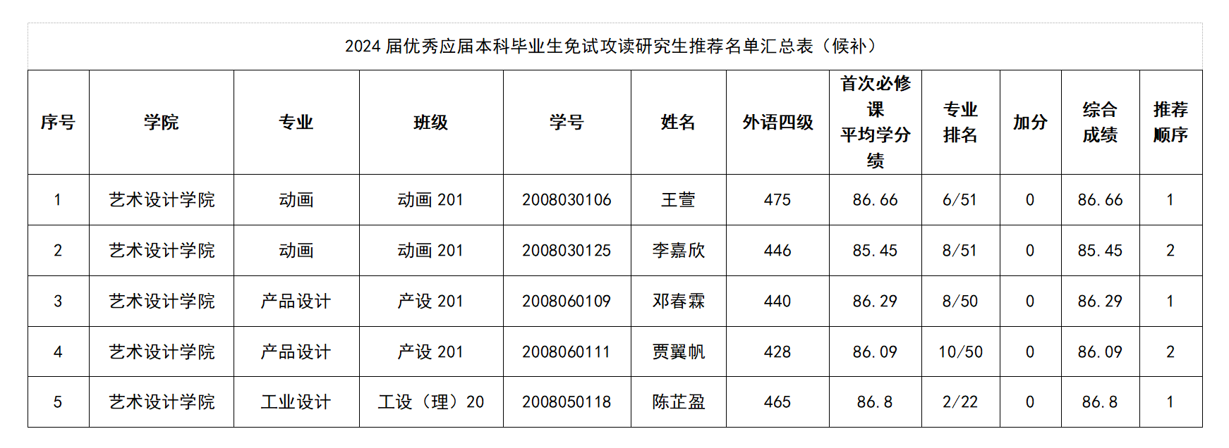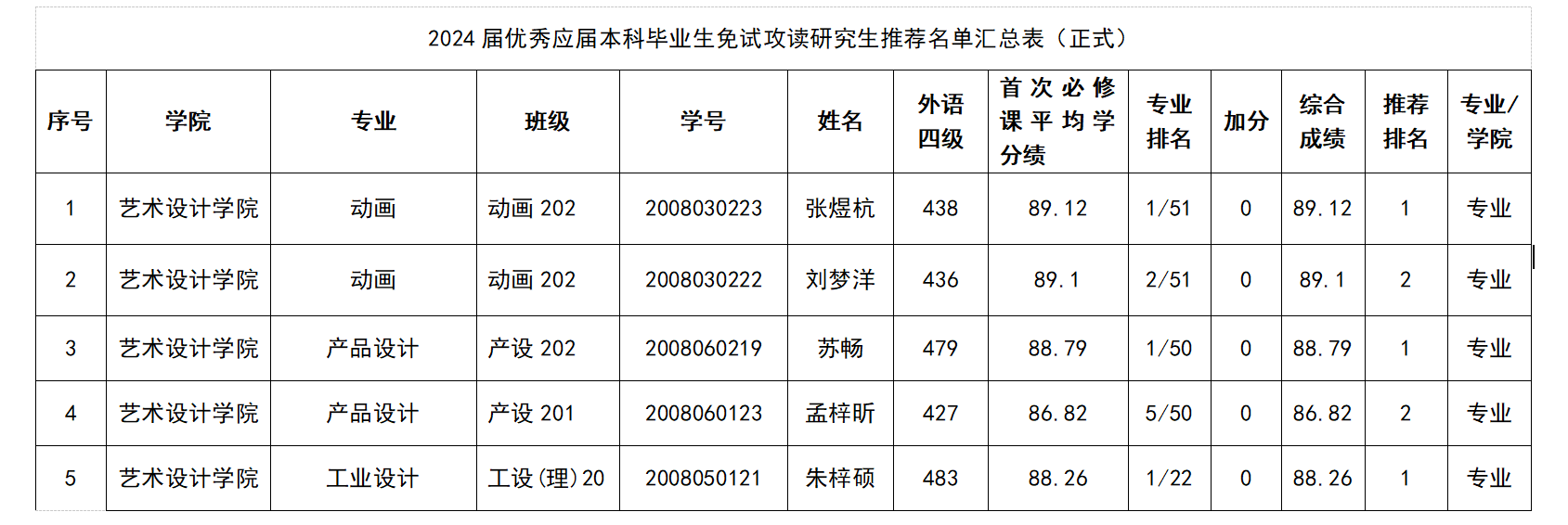 啪啪啦 2024届优秀应届本科毕业生免试攻读研究生推荐名单公示