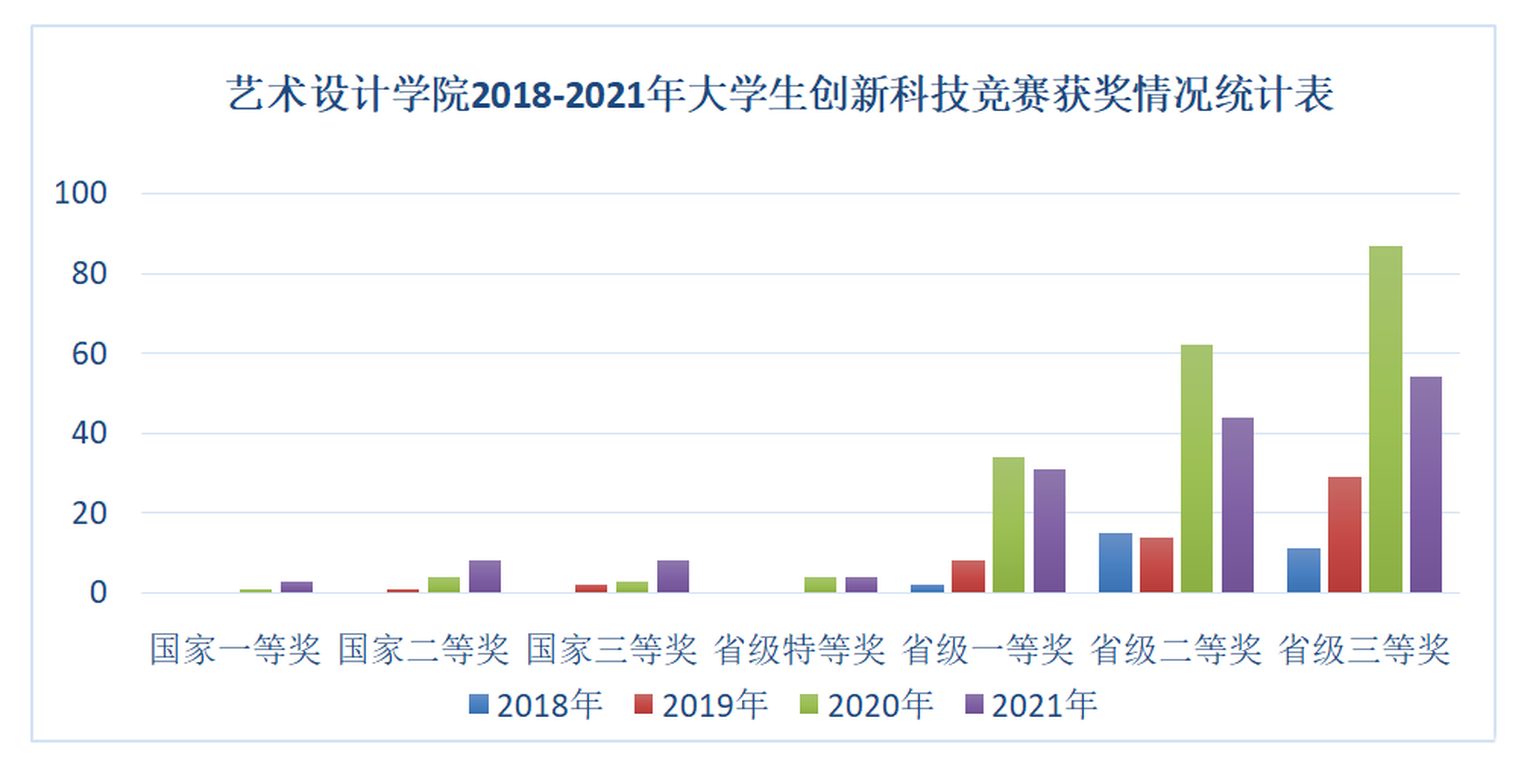 双创中心是落实“做中学”教育理念、培养“工匠精神”的良好载体。中心成立以来,共成立了11个工作室,学生在工作室教师指导下申请各项专利300余项,发表文章110余篇,获得大创项目资助600余项。中心组织各类创新创业讲座30余场,并面向全校师生多次举办丰富多彩的艺术型创新创业展,得到师生一致好评。在国家级设计大赛中分别获得全国金奖8项、银奖16项、铜奖30余项,在辽宁省大学生科技竞赛等赛事中获得省一、二、三等奖共400余项,在全国各项行业设计竞赛中获得一、二、三等奖共计160余项,奖金累计三十余万元。中心成立以来承办省级科技竞赛“全国高校数字艺术设计大赛辽宁省分赛”,承办啪啪啦