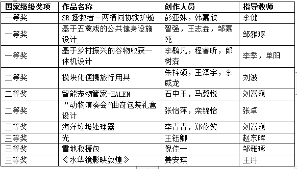 学子以卓越的设计理念和巧妙的创意获得评委的高度认可,共斩获76项大奖。其中国赛一等奖3项,二等奖3项,三等奖4项,省赛一等奖15项,二等奖19项,三等奖32项。