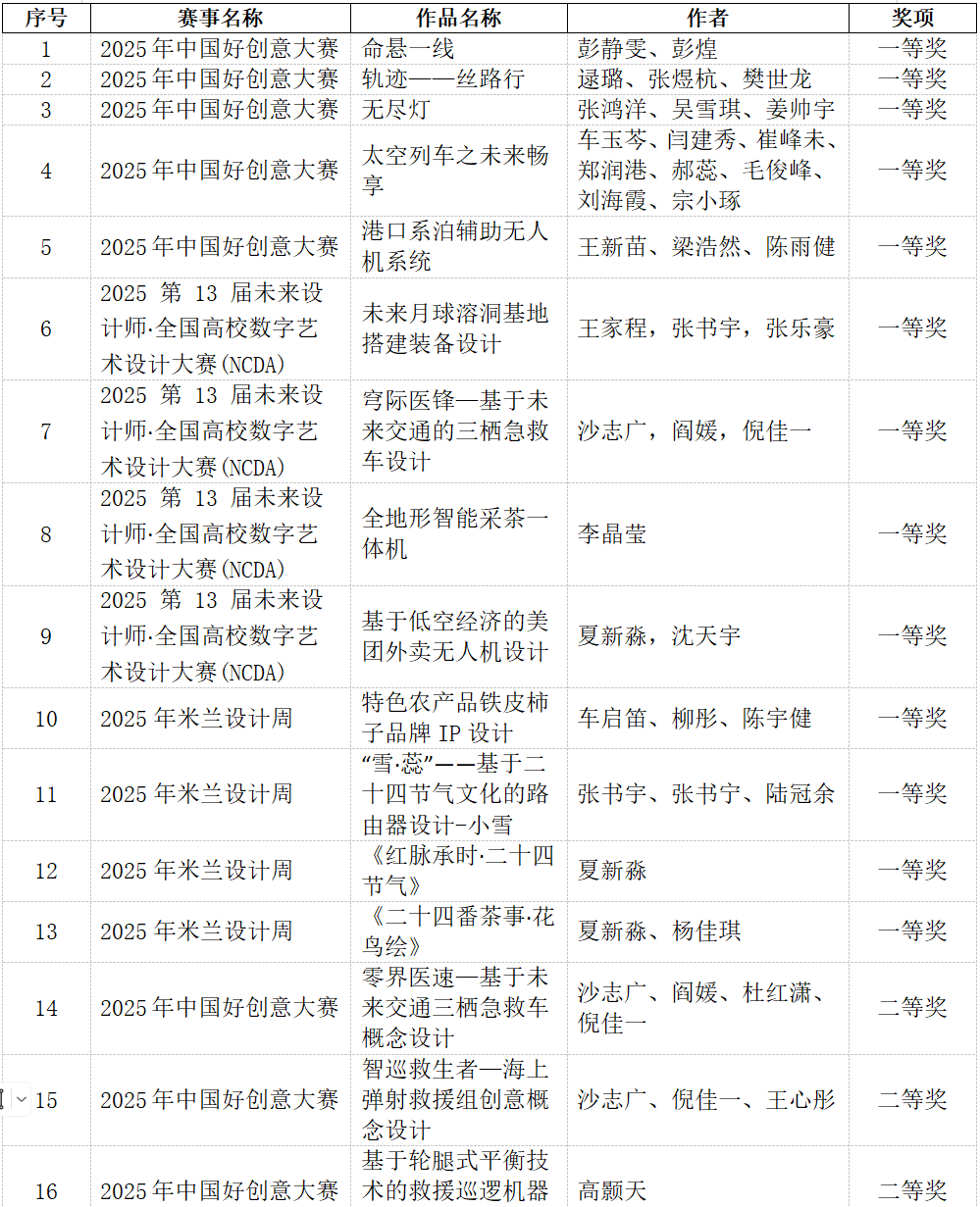 持续构建“以赛促学、以赛促教、以赛促创”的教学生态,通过组织学生参与各种国内外高规格赛事,全面激发学生的专业潜能与创新动力。这些竞赛不仅是检验教学成果的试金石,更是学生从课堂走向产业、从理论迈向实践的关键桥梁。未来,学院将进一步推动学科交叉与产教融合,完善创新人才培养机制,助力更多学子在设计与创意领域成就卓越、贡献社会。