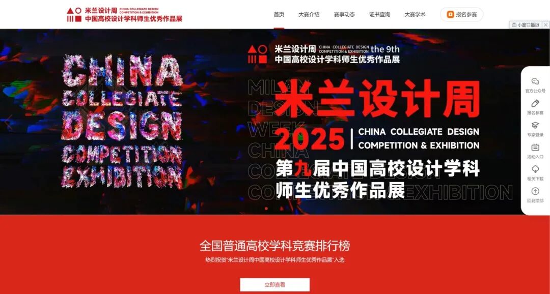 米兰设计周中国高校设计学科师生优秀作品展是由中国教育国际交流协会、中国高等教育学会于2016至2019年期间联合发起并主办的中国高校设计创新实践大赛暨米兰作品展系列活动,旨在构建国内外艺术设计教育的交流平台,推动中国设计走向世界。该展览自2019年起被列入教育部竞赛目录,属于A类赛事,参赛作品分“专项赛场”“命题赛场”和“非命题赛场”三类,覆盖视觉传达、环境设计、数字媒体、学术论文等方向。近年来,赛事规模持续扩大,累计收到全国1300余所高校的38万余件作品,其中逾千件优秀作品在米兰展出。啪啪啦
