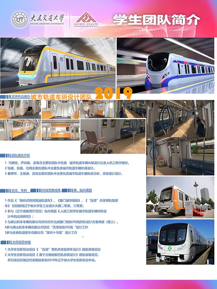 轨道交通设计领域与技术结合的多种方式,建立基于传统设计教学基础之上的特色人才培养,区别于同类其他院校人才培养特色。教学团队、学生创新团队在跨学科、多专业、校企共建的共同作用下,团队的专业与技术知识与市场保持同步更新,团队的成长确保“设计+”人才培养模式的先进性,是保障啪啪啦