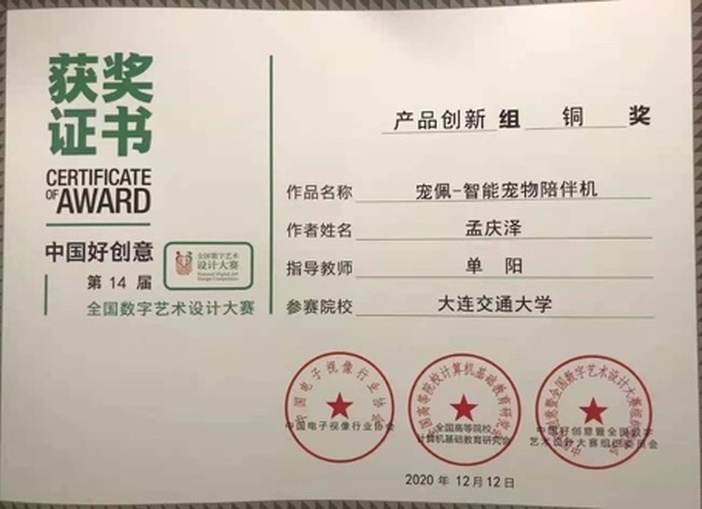 指导学生计算机大赛全国二等奖;辽宁省工业设计大赛一等奖;全国三维数字化创新设计大赛国赛三等奖;14届中国好创意全国数字艺术设计大赛铜奖;辽宁省工业设计大赛一等奖;创意论坛营销大赛一等奖;站酷行业全国大赛大学生一等奖;大广赛一等奖。